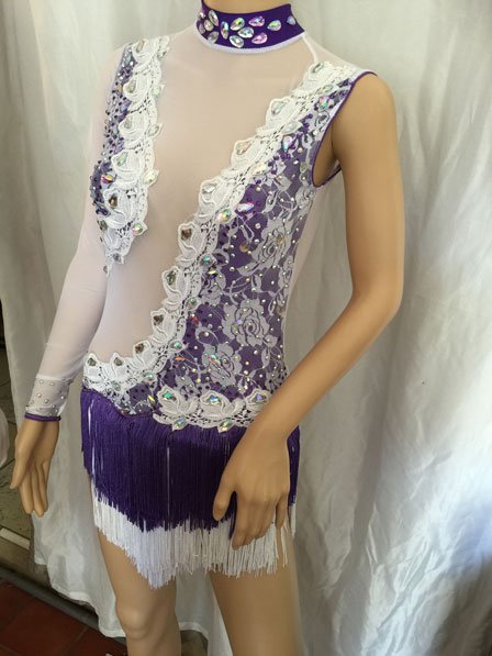 White mesh and purple spandex with white lace on top